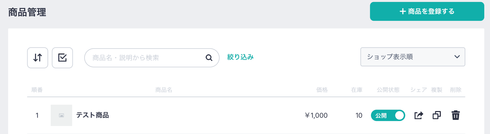 実際に、Shopifyにテスト用の商品を作成してください。テストなので、架空の情報(「テスト商品」など)でOKです!