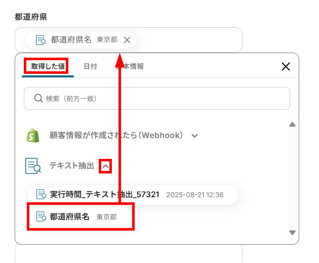 Shopifyから取得した都道府県コードを変換する設定をします。