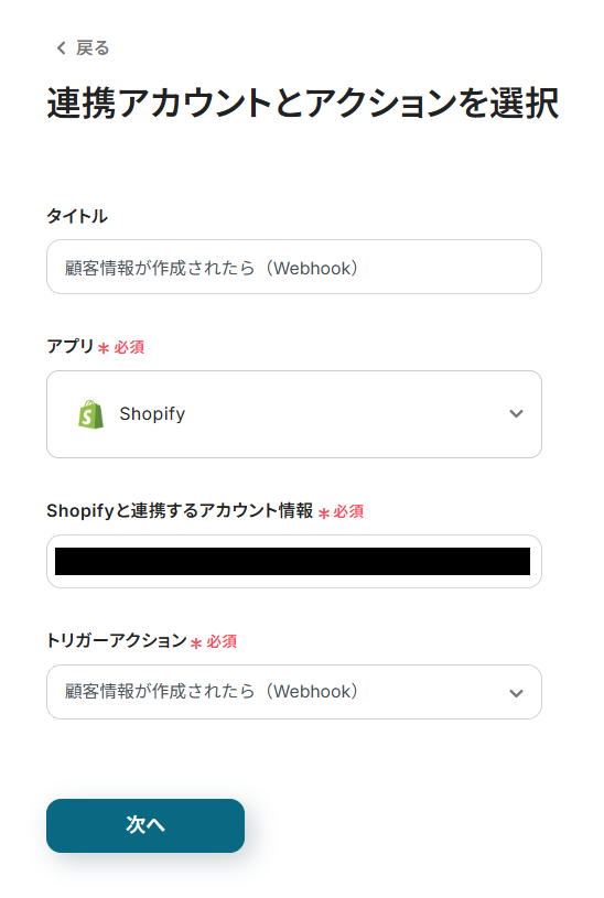 ステップ3:Shopifyのトリガー設定