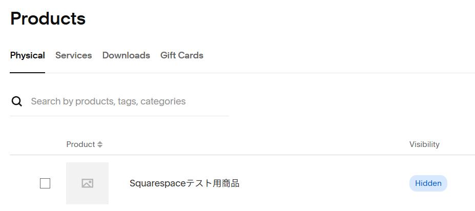 実際にSquarespaceの「Products」を確認してみると、しっかり商品が作成されていますね。