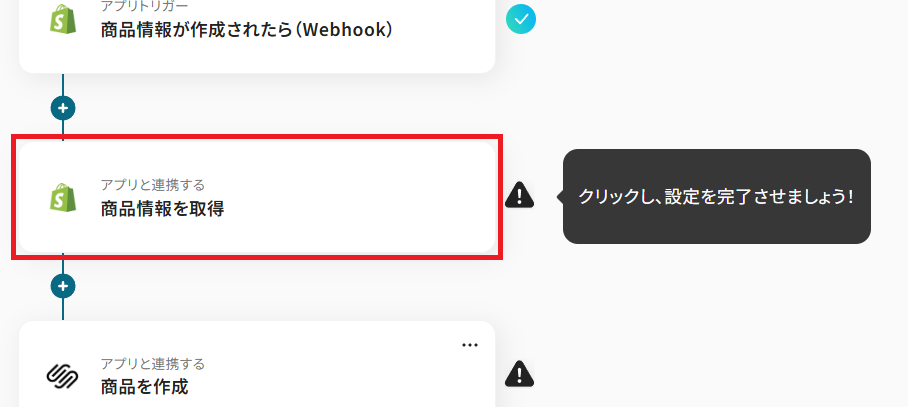 Shopifyで商品が作成されたことをYoomで検知したら、作成された商品についての詳細な情報を取得していきます。