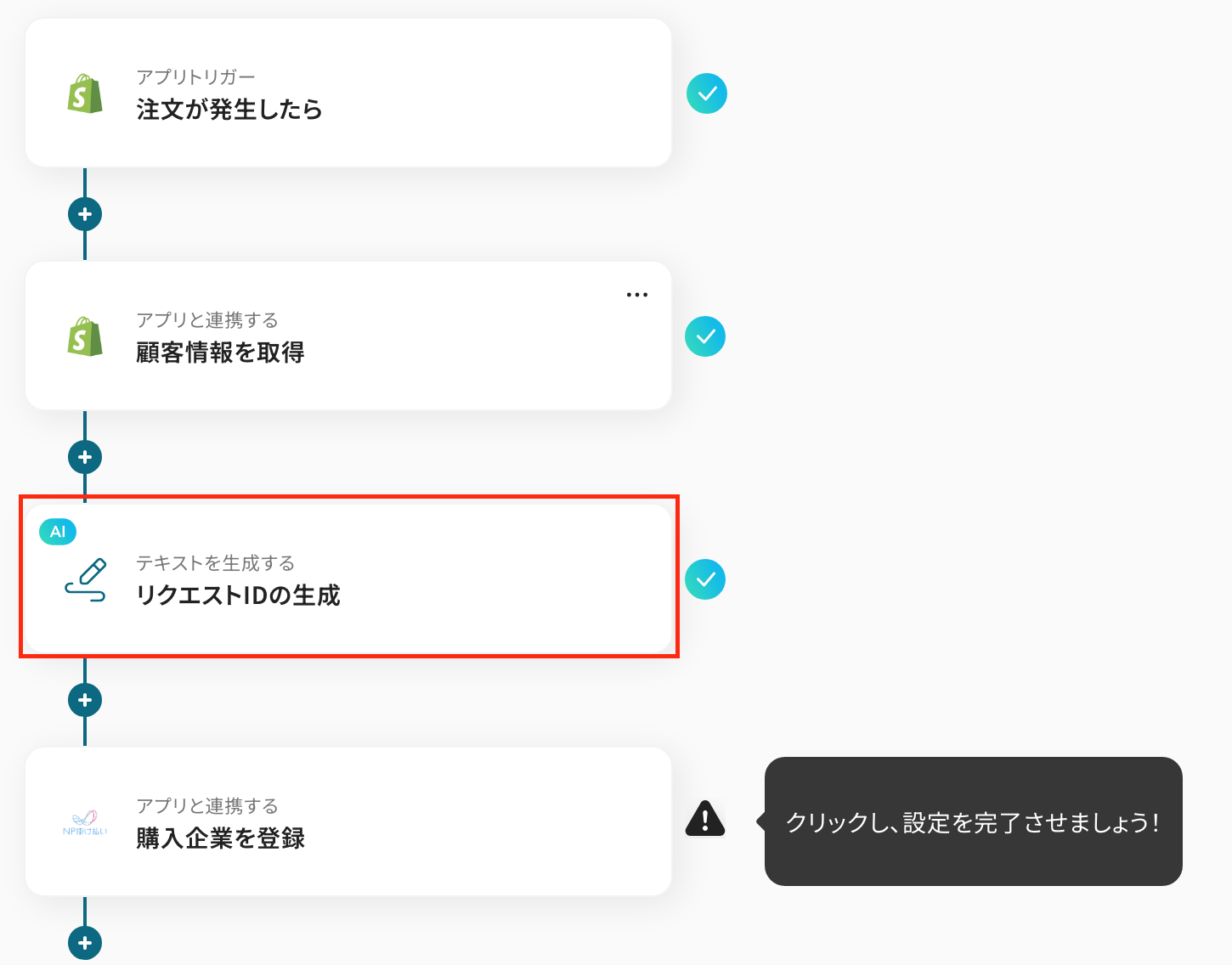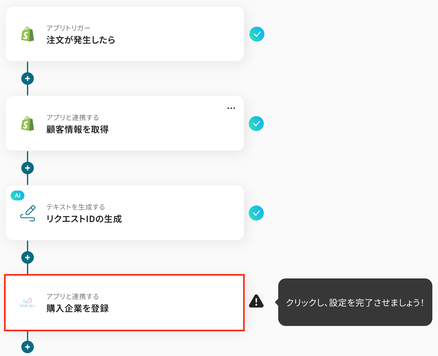 「Shopifyで注文が発生したら、NP掛け払いに購入企業を自動登録する業務ワークフローです。