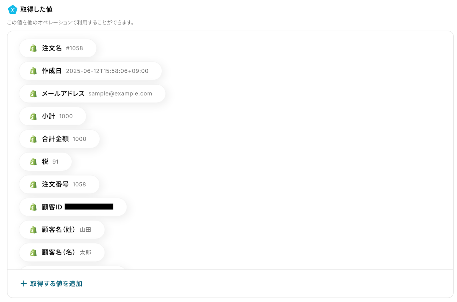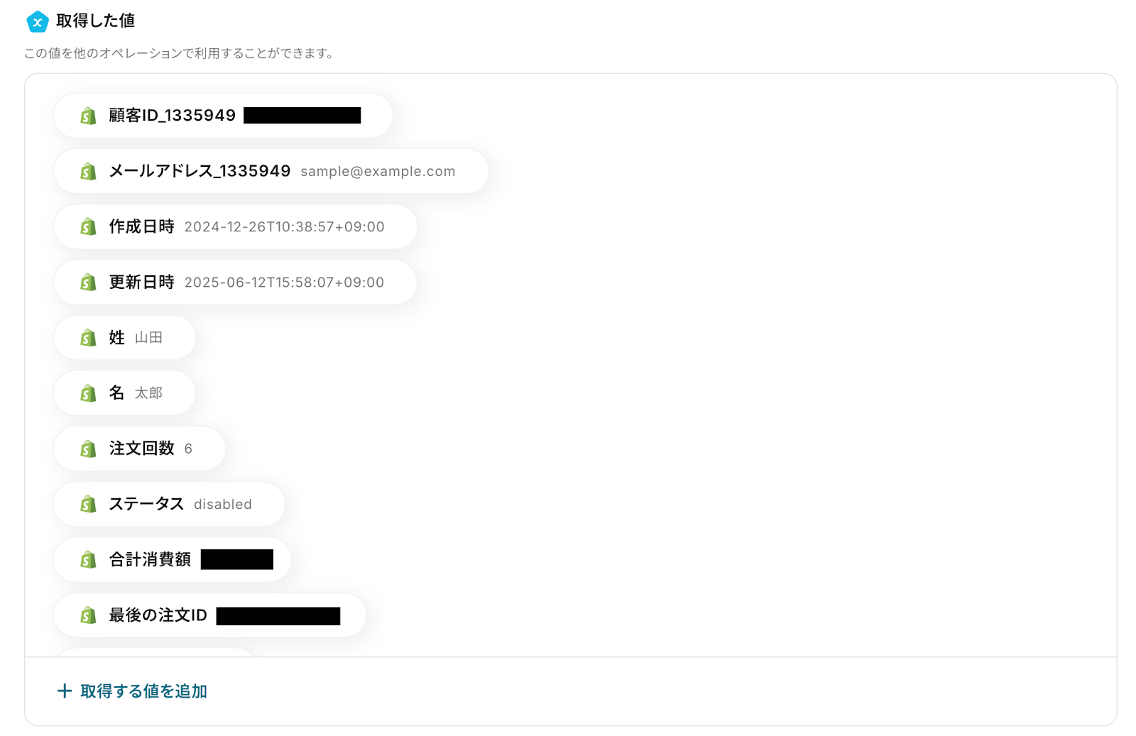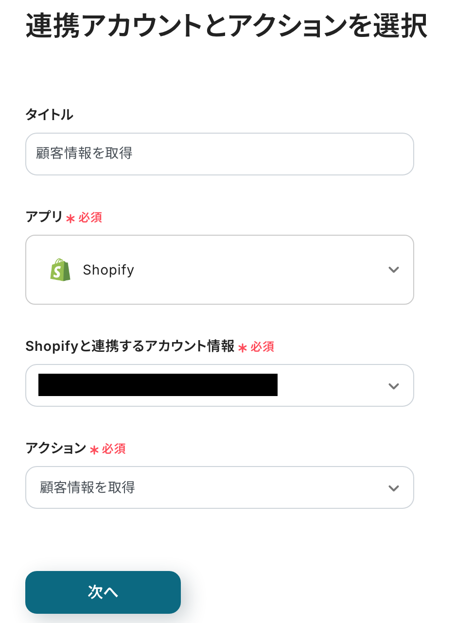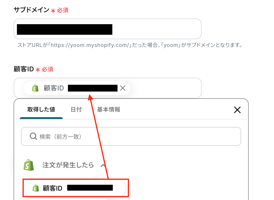 ここでは、先ほど取得した情報をもとに、Shopifyの顧客情報を取得する設定を行います。