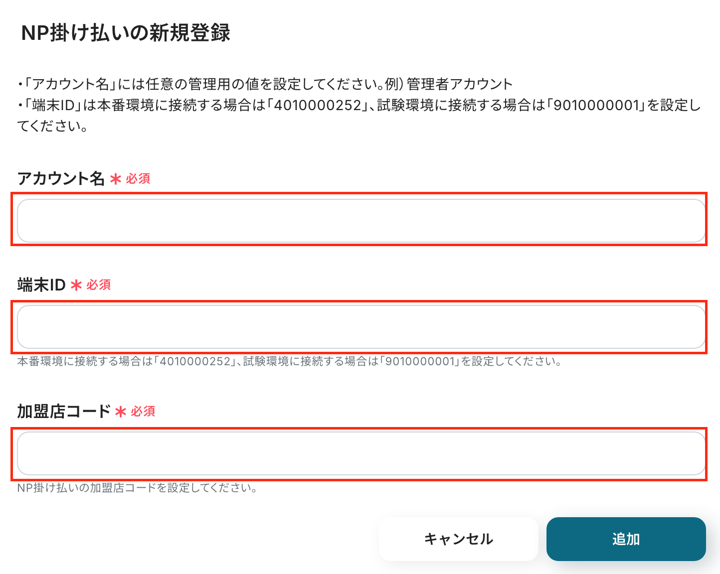 ステップ6:NP掛け払いで購入企業を登録する設定
