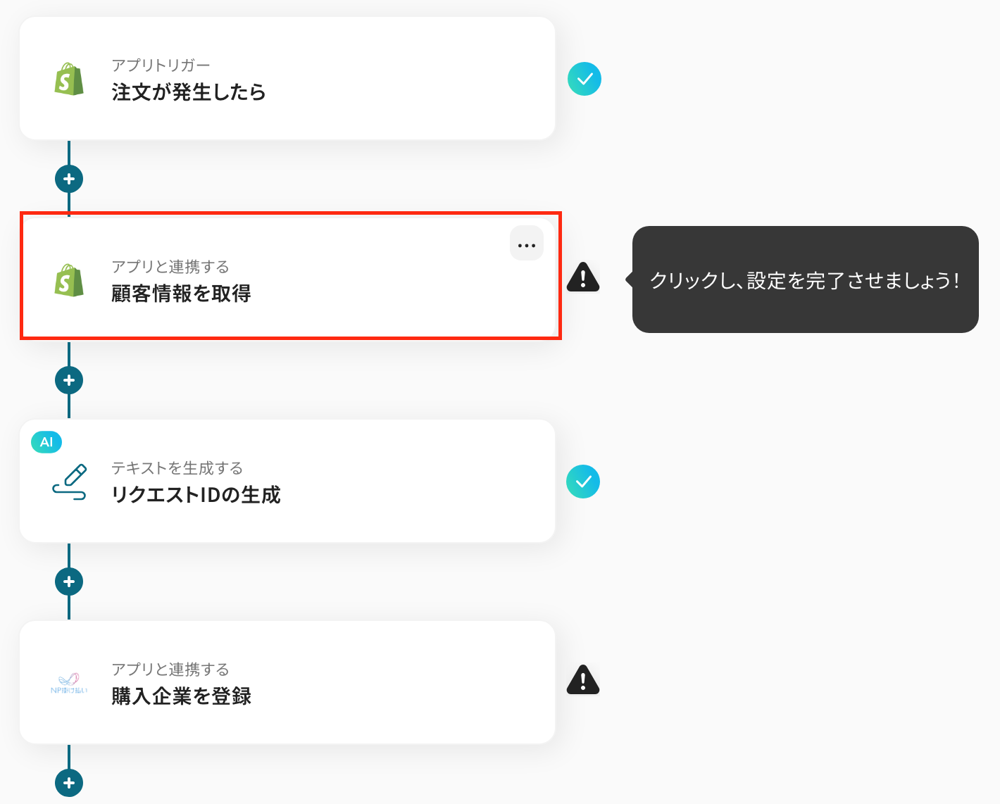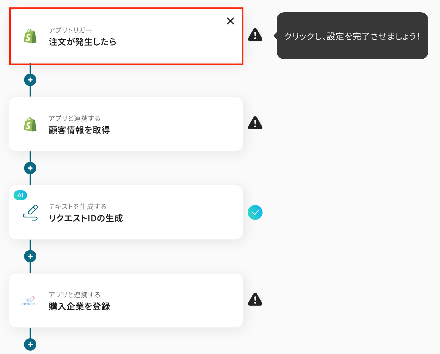 今回は「Shopifyで注文が発生したら、NP掛け払いに購入企業を登録する」フローを作成していきます!