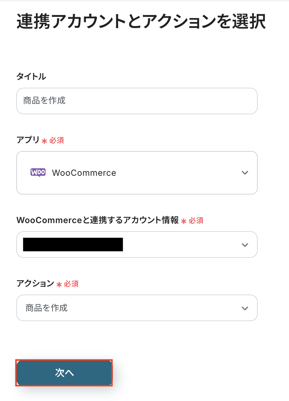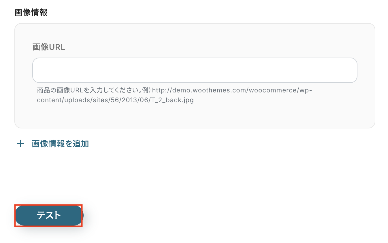 - WooCommerceで商品を作成するアクションでは、連携したいサイトのURLを任意で設定してください。