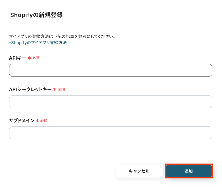 Shopifyのマイアプリ連携について、詳しくはこちらをご参照ください。