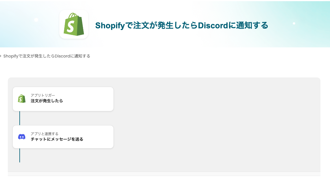 ここからは、「Shopifyで注文が発生したらDiscordに通知する」自動化の設定方法を、Yoomのフローボットテンプレートを使って解説します。