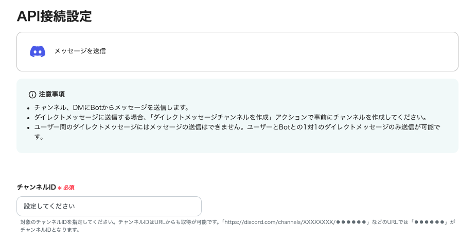 - 編集欄をクリックすると、連携済みのルームがピックアップされます。該当のチャンネルを選択すると、IDが引用されます。