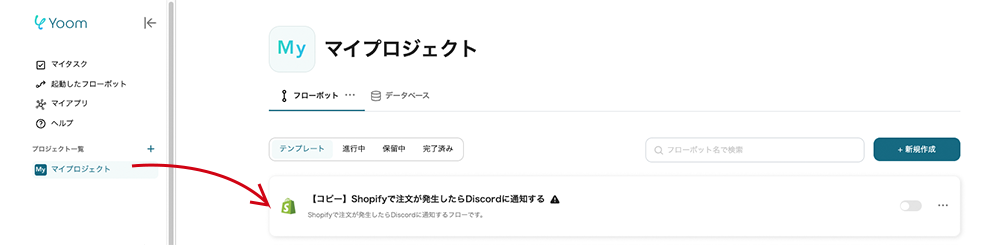 ステップ2 Yoomのフローボットテンプレートをマイプロジェクトへコピーする