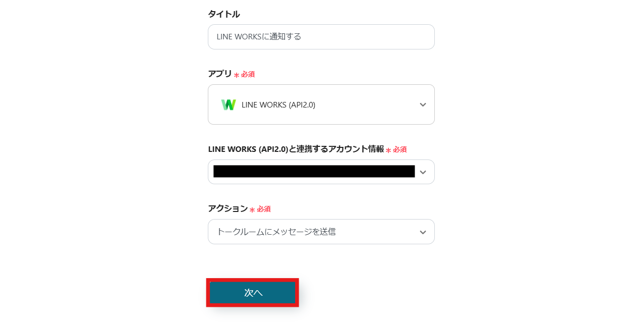 2.LINE WORKSと連携するアカウント情報を入力します。