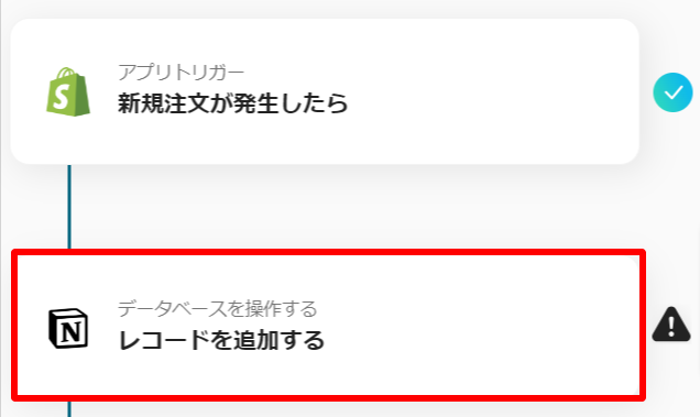 Shopifyで注文が発生したらNotionに追加するフローです。