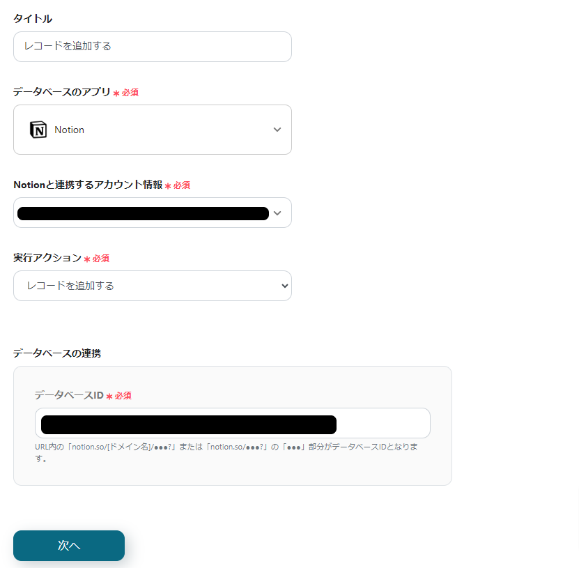 その下にNotionのデータベースIDを指定する欄があるので、商品情報を追加したいデータベースIDをあらかじめ作成して選択しましょう。