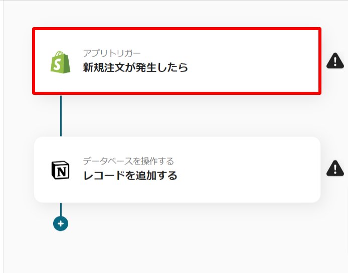 今回のフローは「Shopifyで注文が発生したらNotionに追加する」です。