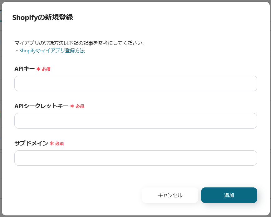 ※Shopifyのマイアプリ登録の詳しい方法は、こちらのヘルプページで解説しています。