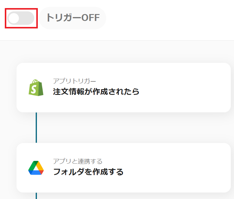 たとえば、Shopifyで注文情報が作成されたら、Google Driveへ自動的にフォルダを作成することが可能です。