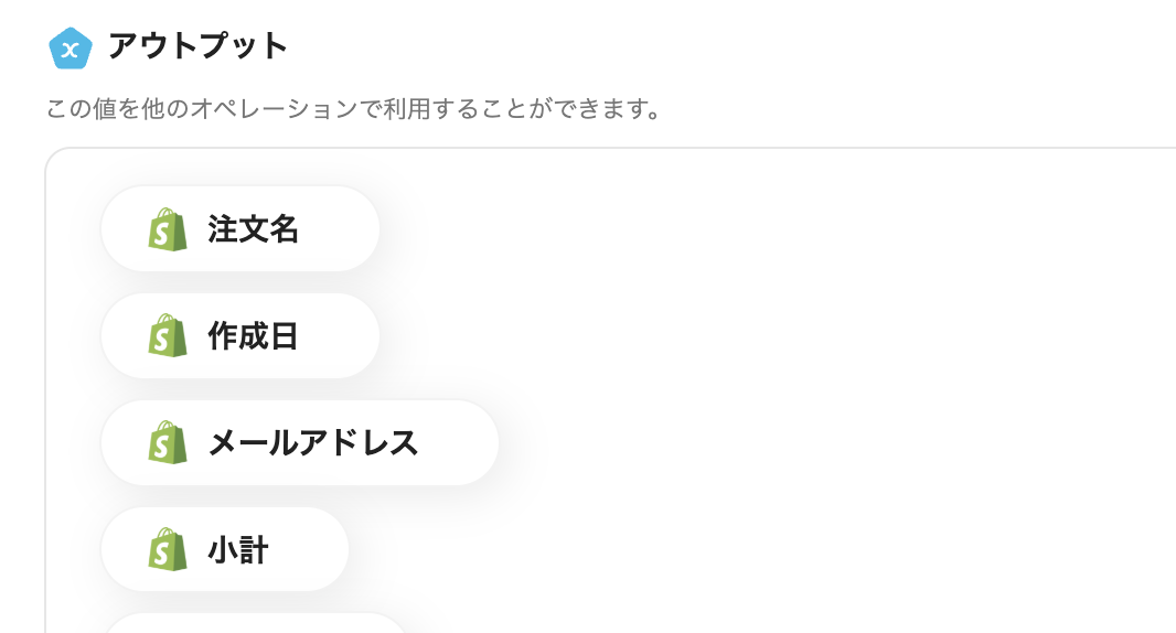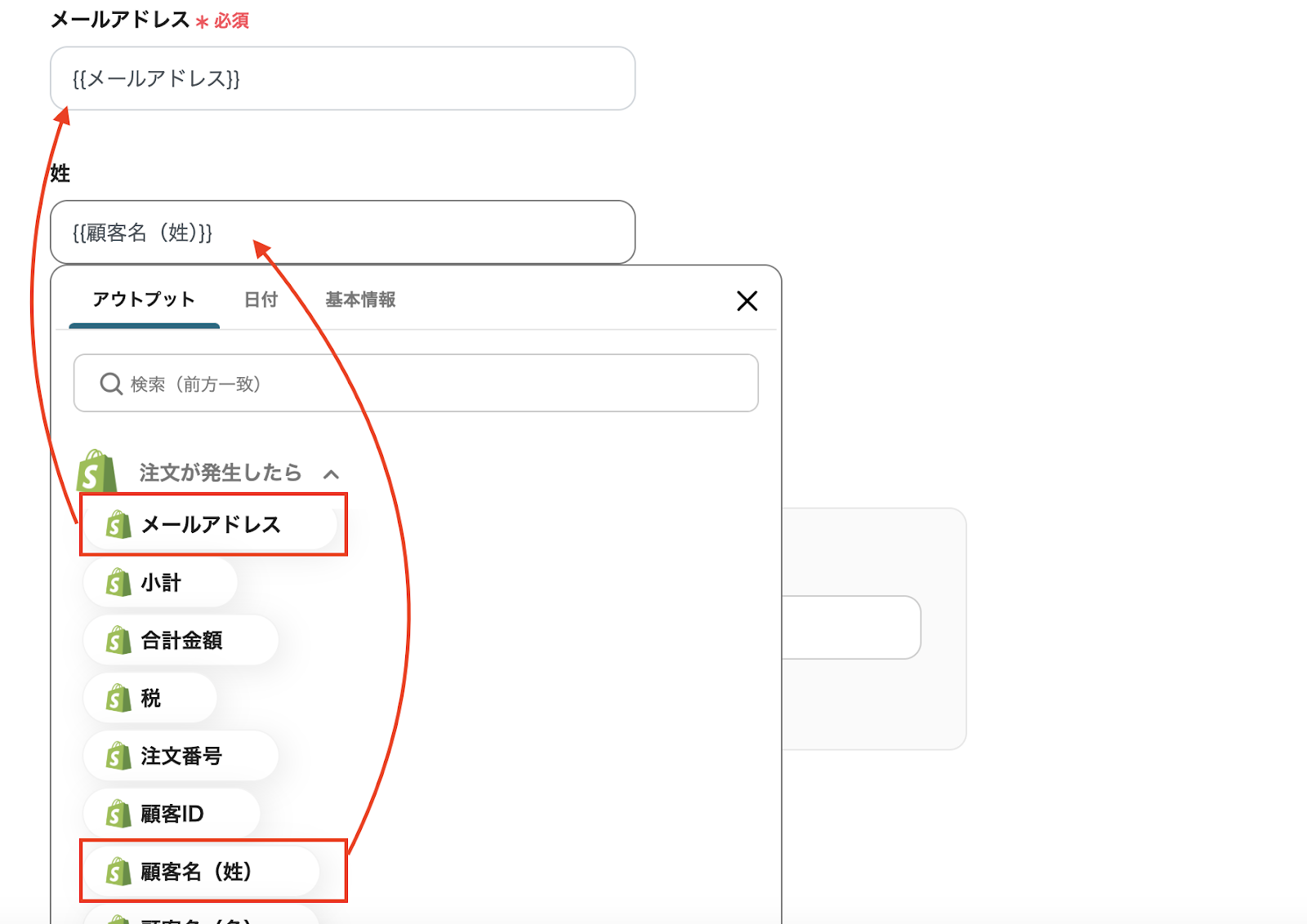 (以下は例として、前ステップで取得した「メールアドレス」、「顧客名(姓)」の情報を引用したものです。)