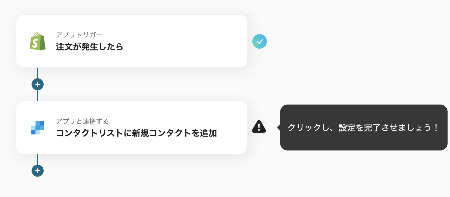(1)最後に、2つ目のアクション「コンタクトリストに新規コンタクトを追加」をクリックしましょう。