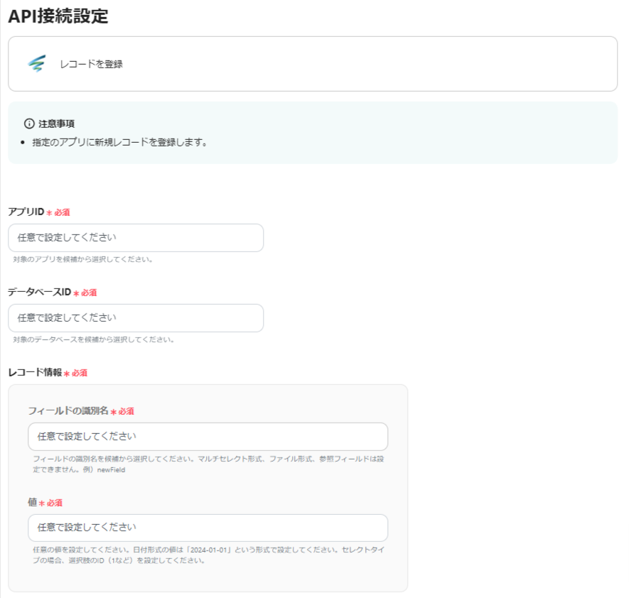 次のページでは、SPIRALにレコードを登録するために詳細を入力します。
