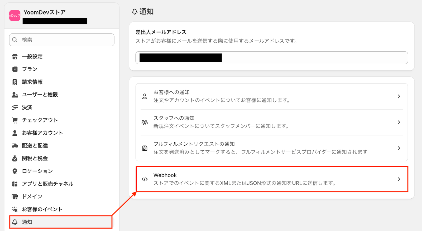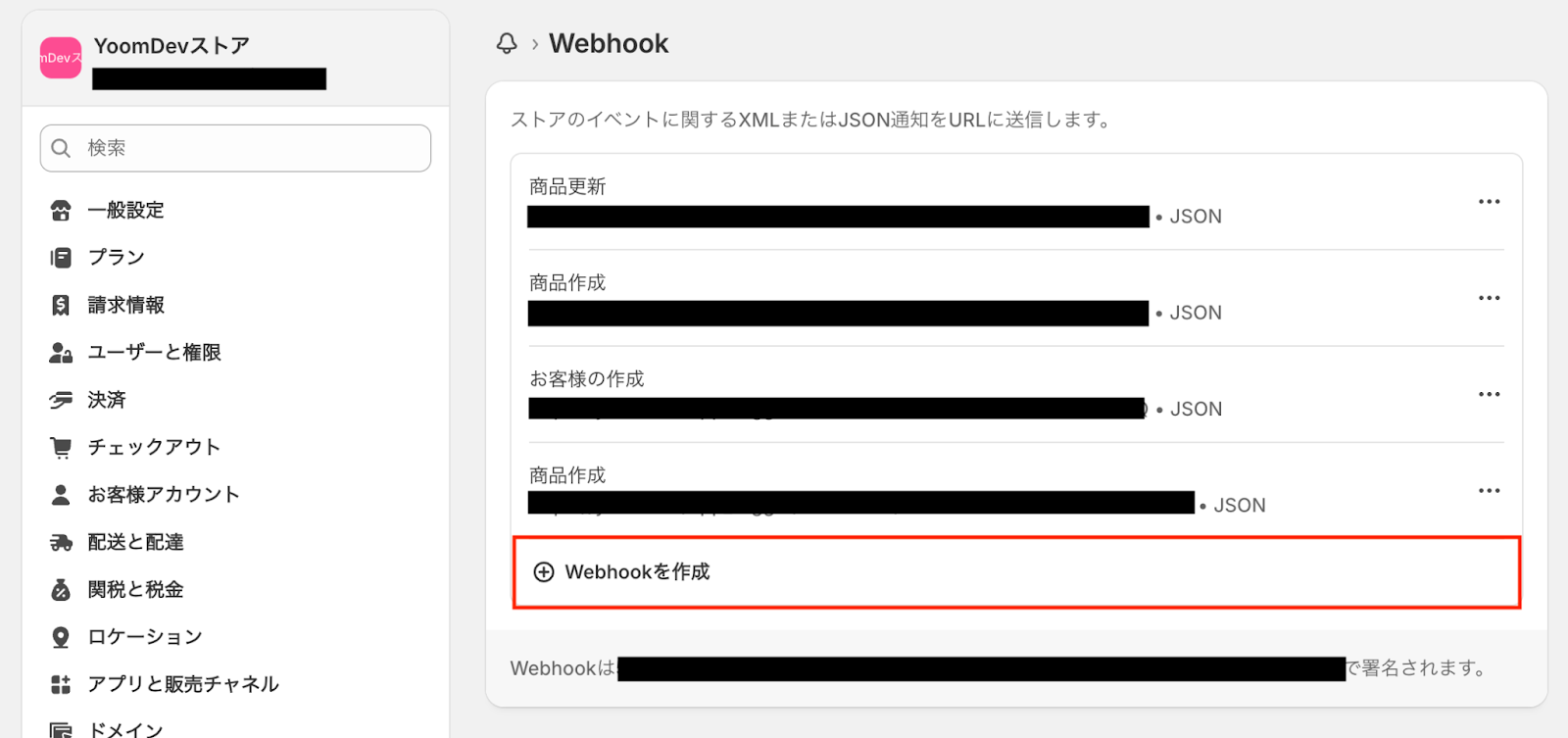 まずは、ShopifyにWebhook URLを設定しておきましょう。