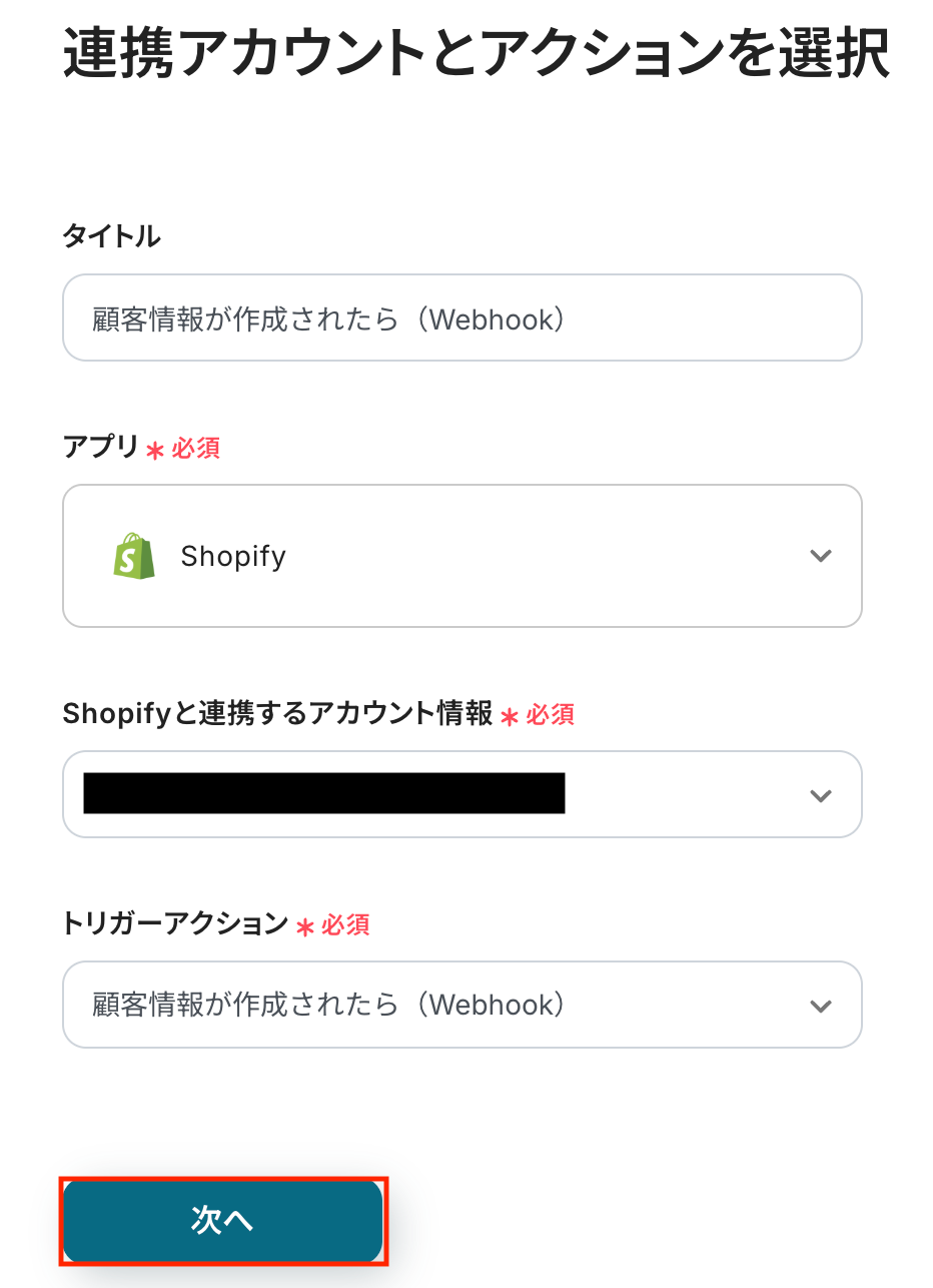 ステップ3: Shopifyのトリガー設定