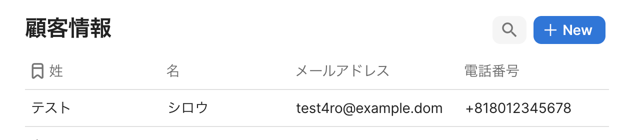 テストが成功すると、作成した顧客の情報が一覧で表示されます。