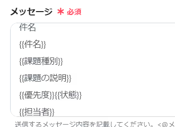 「メッセージ」の部分で追加したものがSlack内ではBacklogに書かれている内容に変換されます。