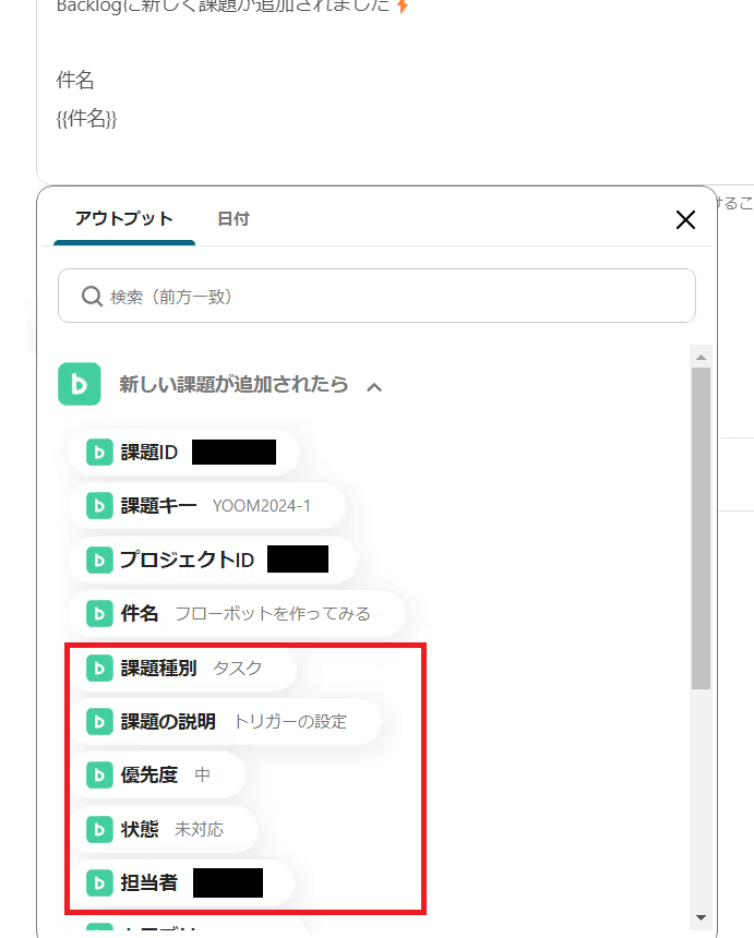 ステップ3:Backlogに課題が追加されたら起動するトリガーを設定