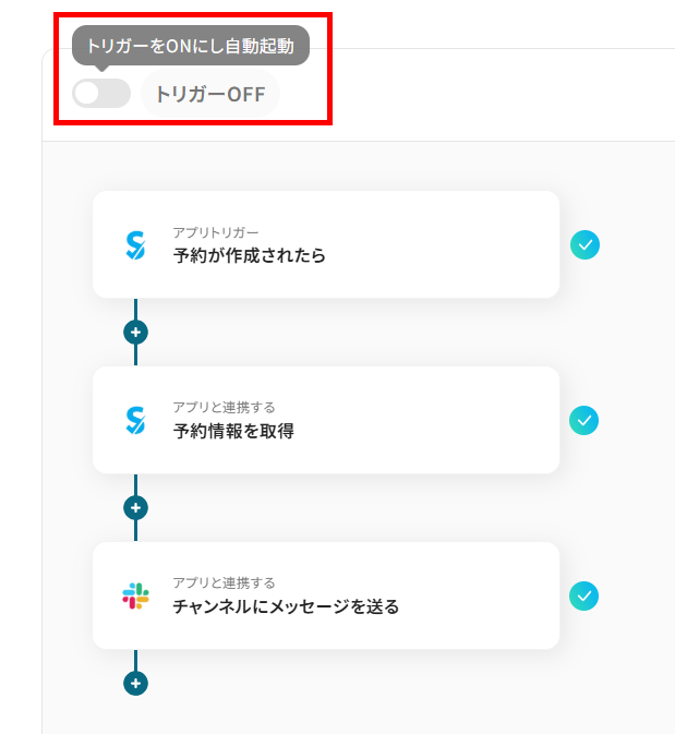 最後に、トリガーをONにすると、すべての設定が完了です。