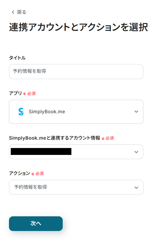 次に、ステップ3でSimplybook.meに作成した予約の詳細情報を取得する設定をします。