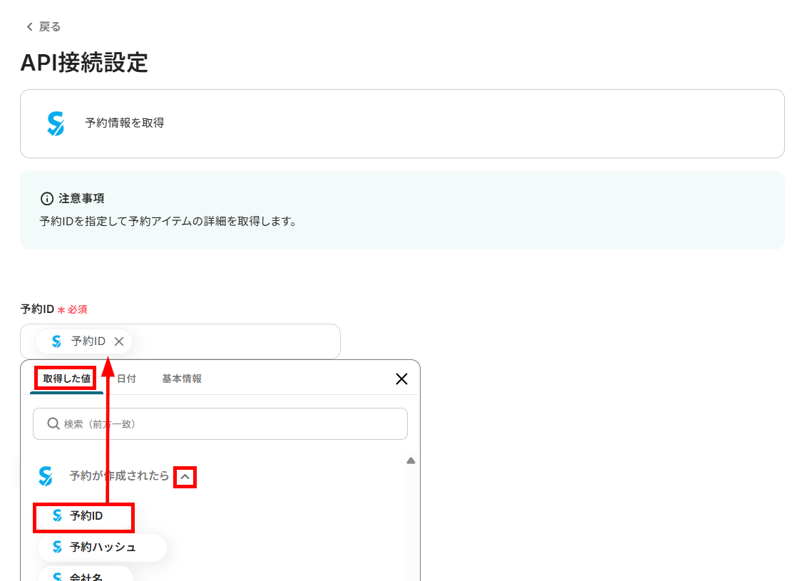予約IDを、以下のように取得した値から設定してください。
