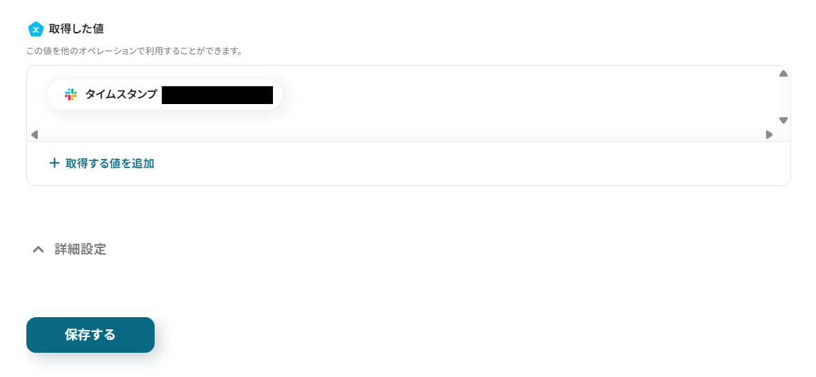 - ここで取得した値(アウトプット)を、以降の設定に利用します。