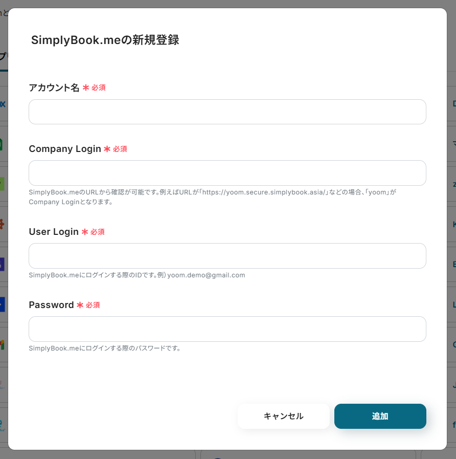 ・Simplybook.me、SlackのそれぞれとYoomを連携してください。