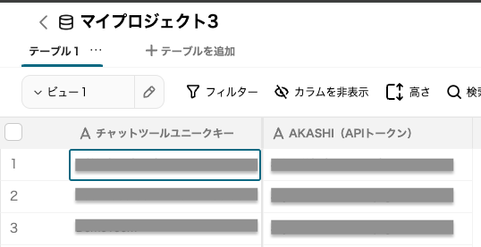 今回は画像のように「チャットツールユニークキー」に、Slackの送信者IDを、「AKASHI(APIトークン)」に、AKASHIから取得したAPIトークンを登録しました。