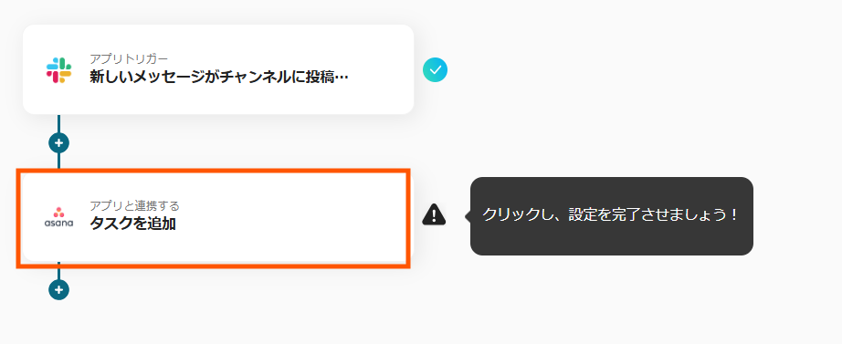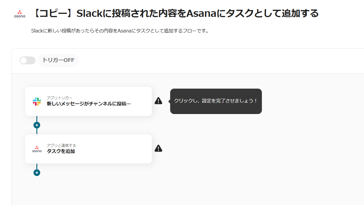 これで【Slackに投稿された内容をAsanaにタスクとして追加する】というフローが完成です。