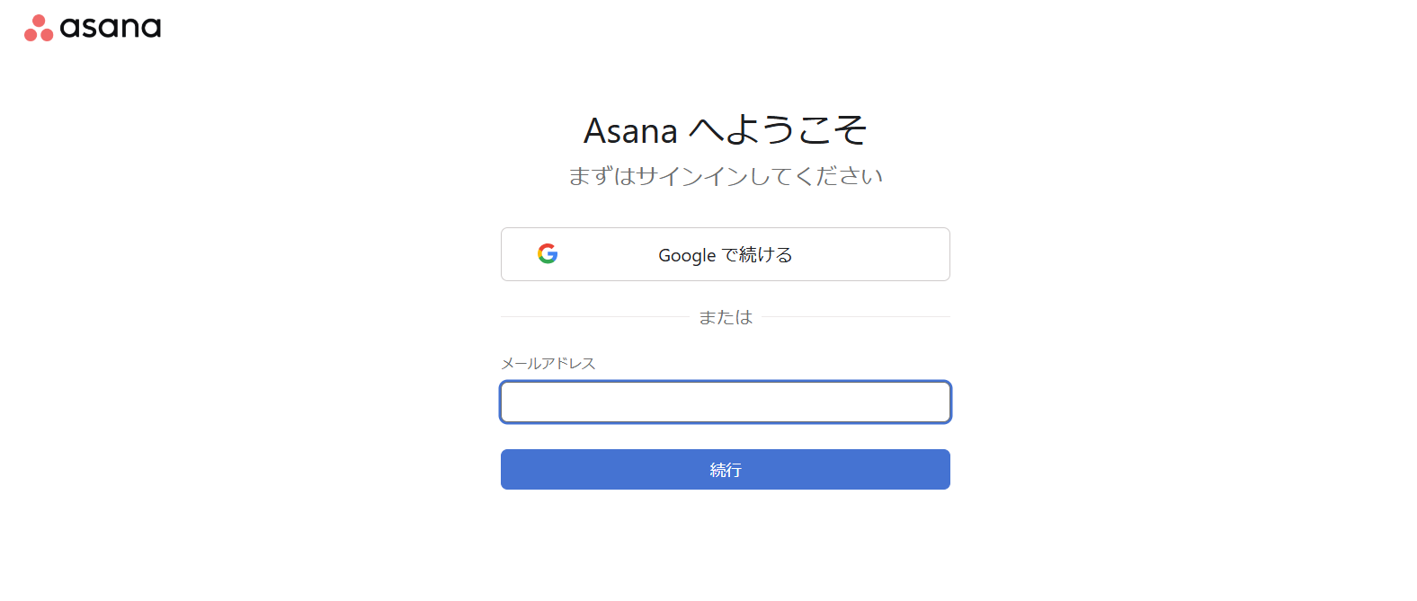 同様にAsanaを選択できたら、使用するアカウントでログインしてください。