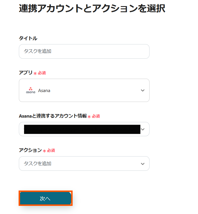 ステップ5:Asanaのアクションを設定