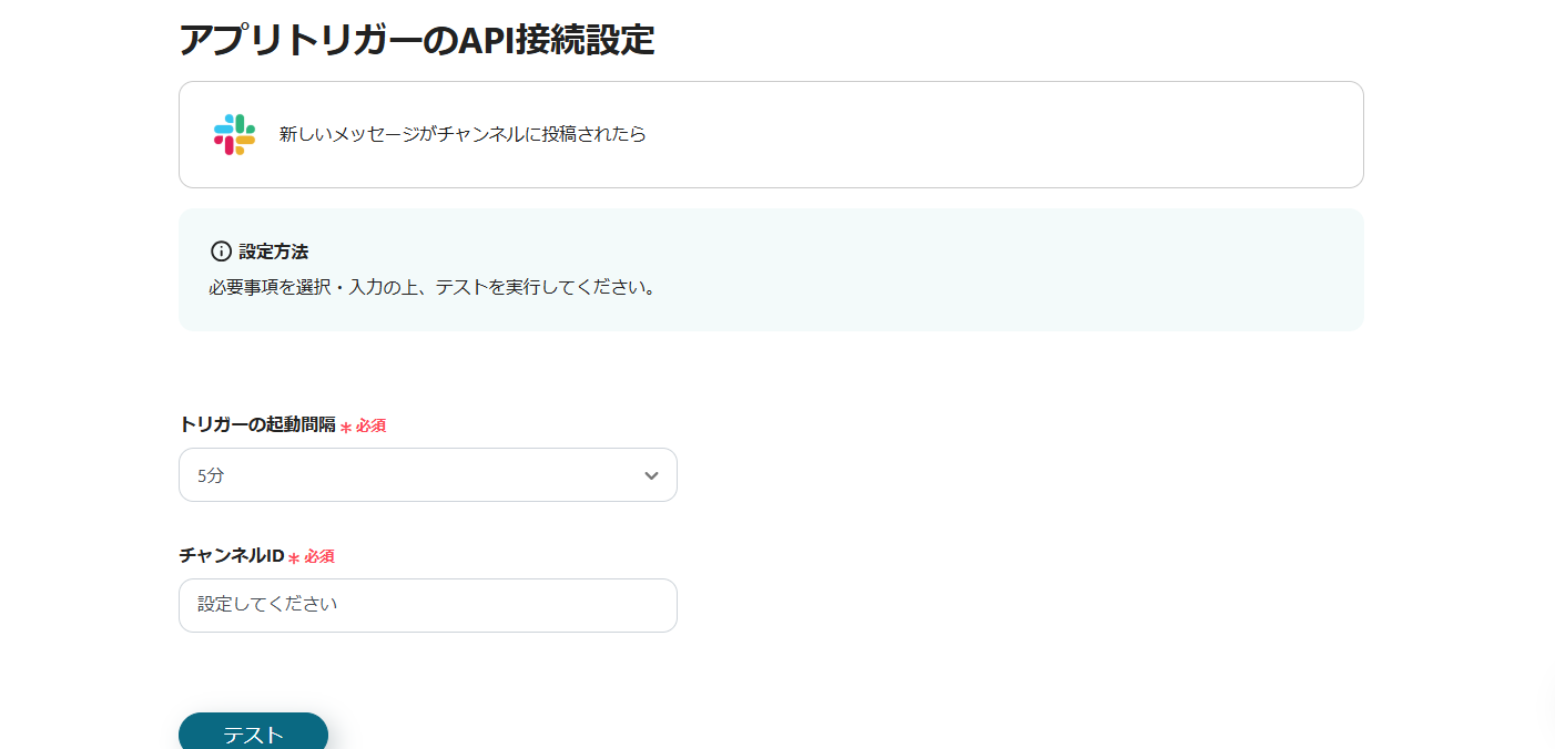 「アプリトリガー 新しいメッセージがチャンネルに投稿されたら」をクリックします。