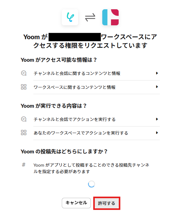 Slackを選択したら、投稿先を選択して、「許可する」をクリックします。