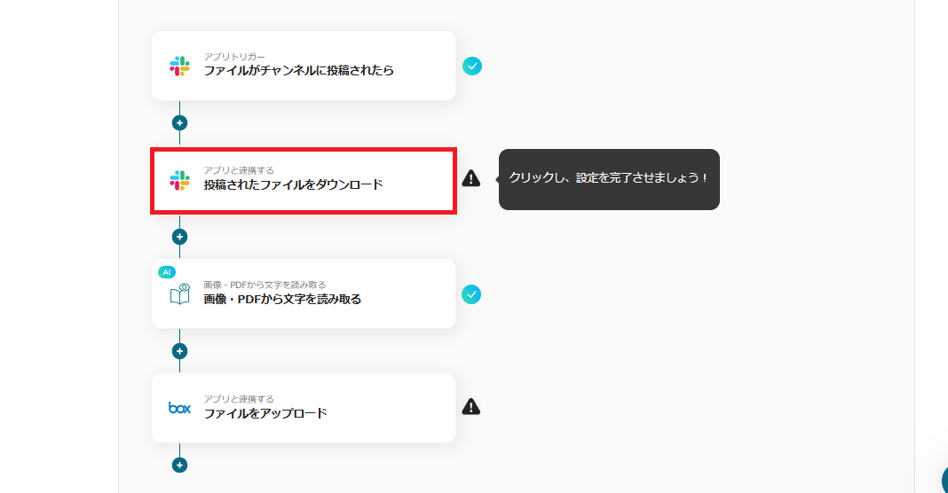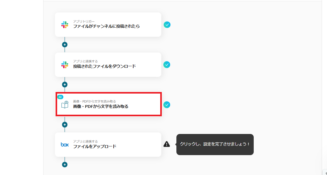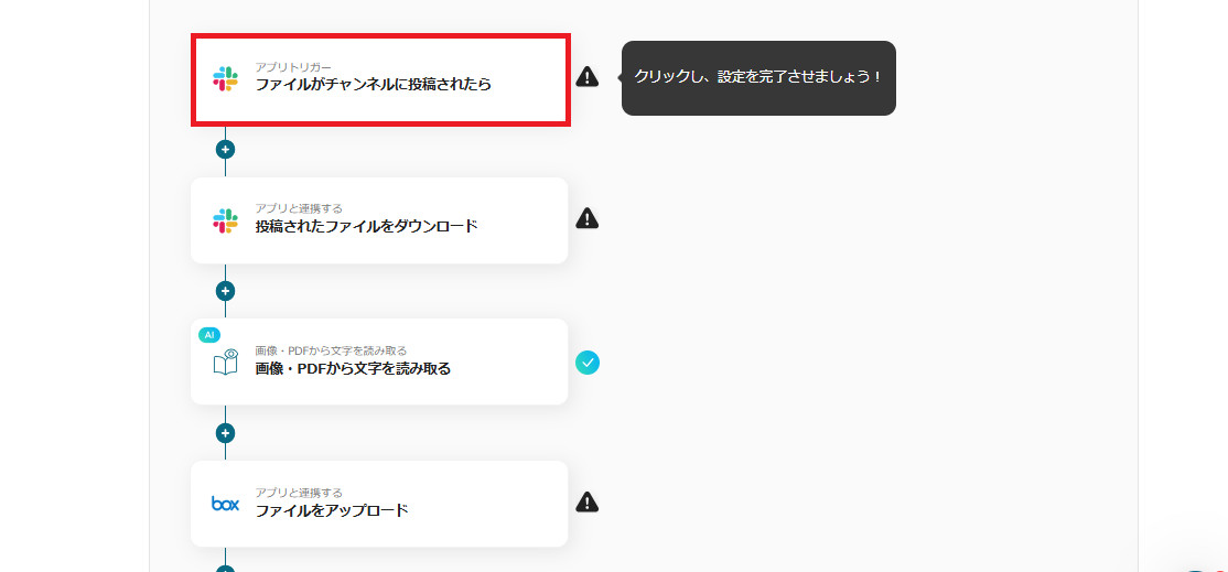 1. Boxの画像をOCRしてkintoneに追加し、Slackに自動通知するフローです。