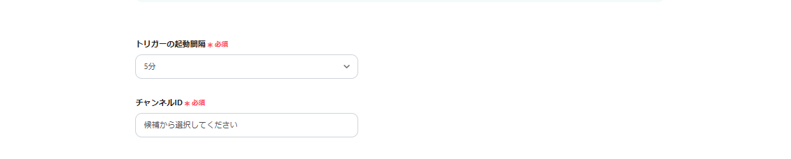 トリガーの起動間隔を5分/10分/15分/30分/60分から選択してください。