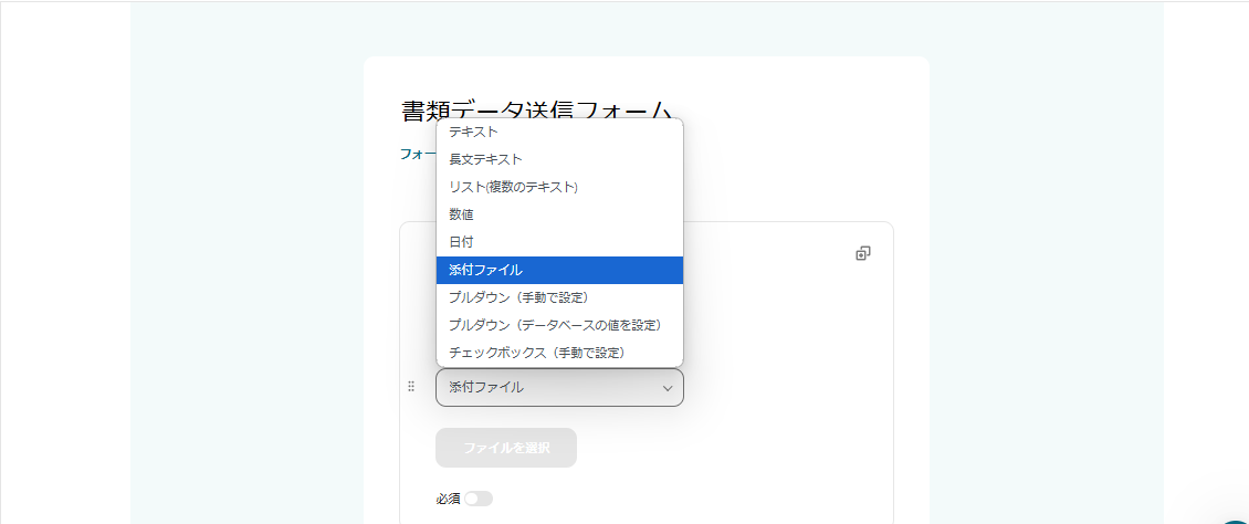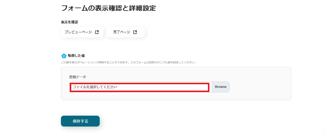 続いて、「ファイルをアップロード」という項目を設定しましょう。