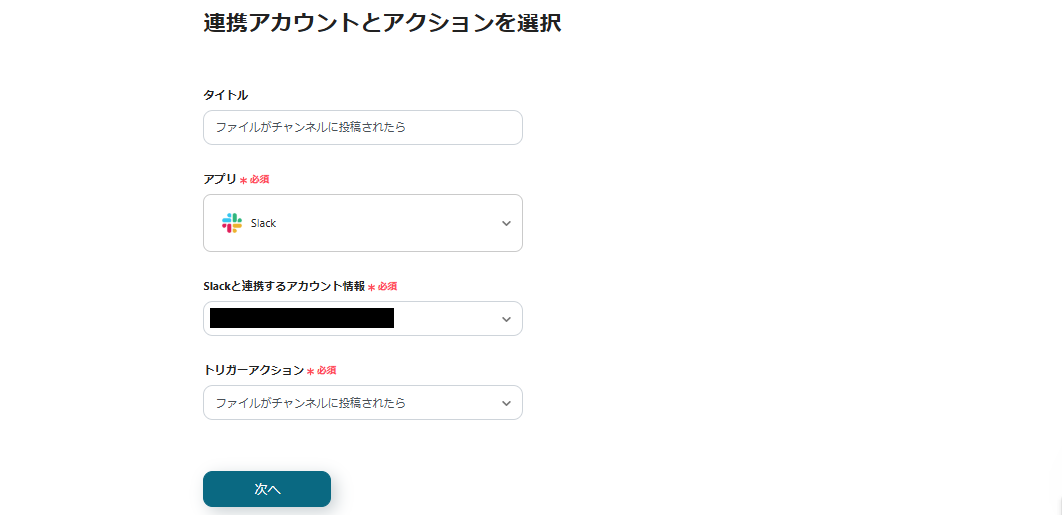 まずは、「ファイルがチャンネルに投稿されたら」という項目をクリックします。