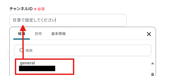 チャンネルIDは以下のように表示される候補から選択しましょう。