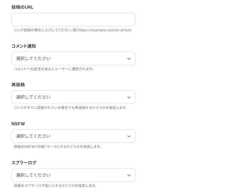 - Redditへ新規投稿を作成する際に、投稿先のサブレディット名、投稿のタイトル、投稿の種類(テキスト投稿やリンク投稿など)、投稿の本文といった内容を自由にカスタマイズできます。