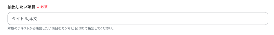 - AIでテキストからデータを抽出するオペレーションにおいて、プロンプトを任意で設定することが可能です。例えば「投稿内容から顧客の要望と課題を箇条書きで抽出してください」のように、目的に合わせて指示を具体的にすることで、抽出する情報の精度を高められます。