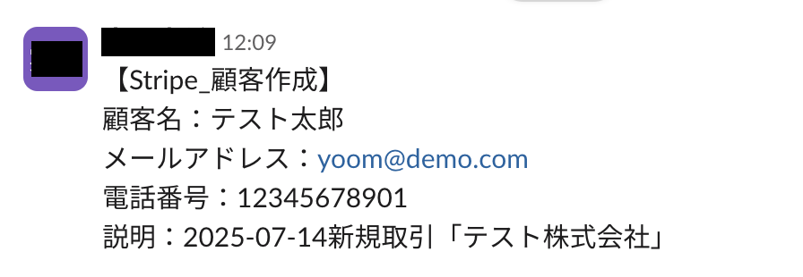 Slack上でのやり取りや顧客情報をリアルタイムでキャッチし、Stripeに自動的に顧客情報を登録します。