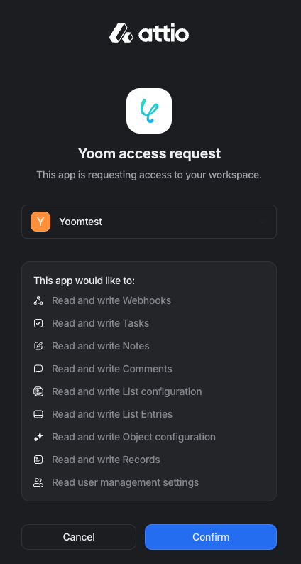 AttioとYoomのマイアプリ登録
