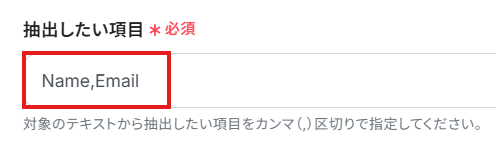 「抽出したい項目」は、テキストから抽出したい項目を設定します。