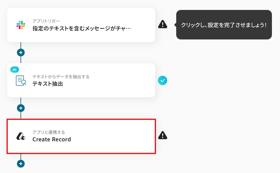 1.アプリと連携する「Create Record」をクリックしましょう。
